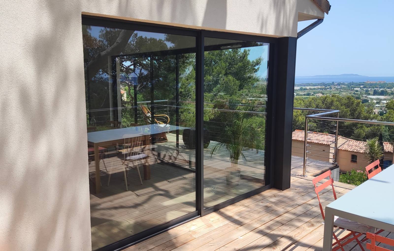 Fabrication de menuiseries ALU "coulissant d'angle" pour professionnels dans le Var